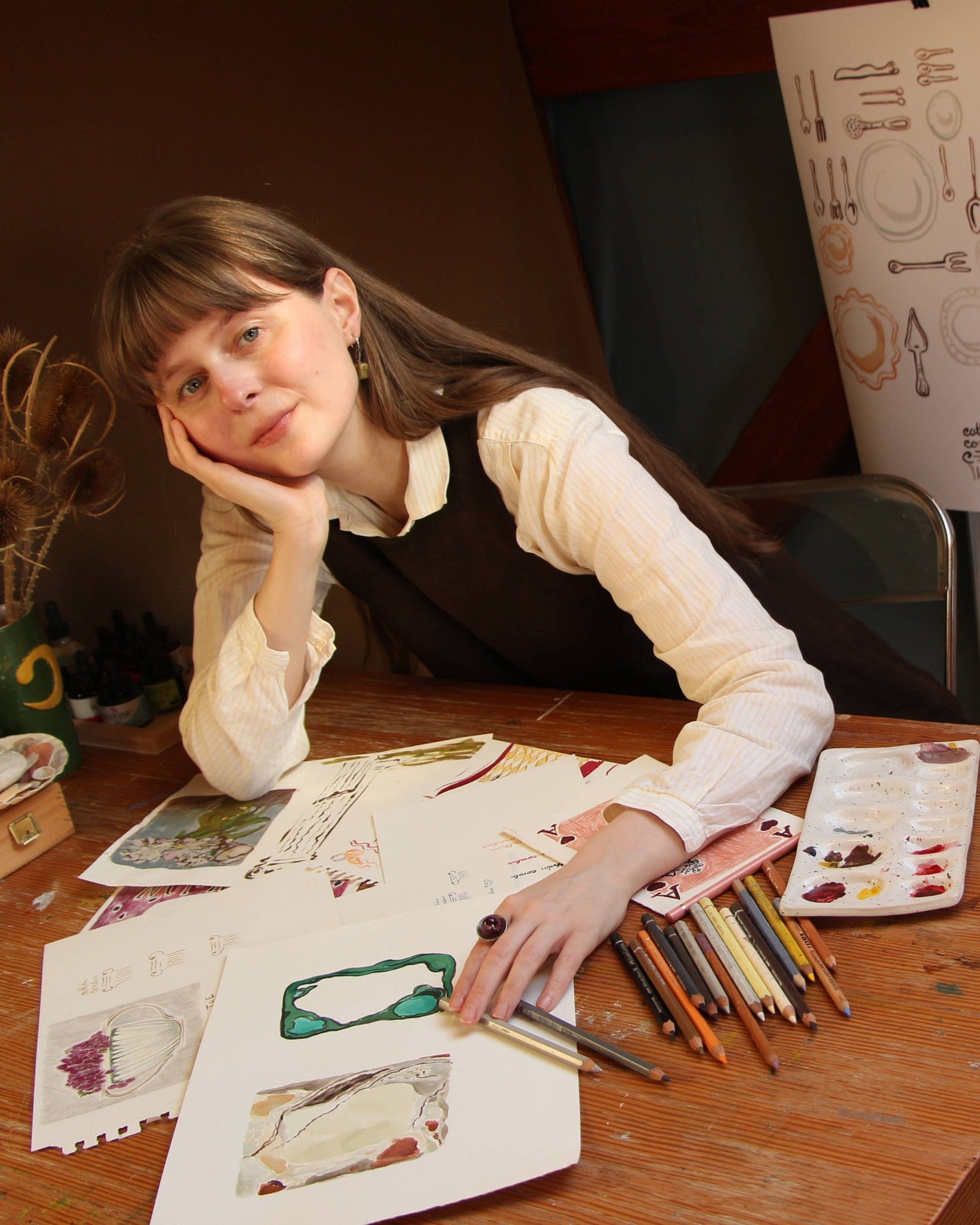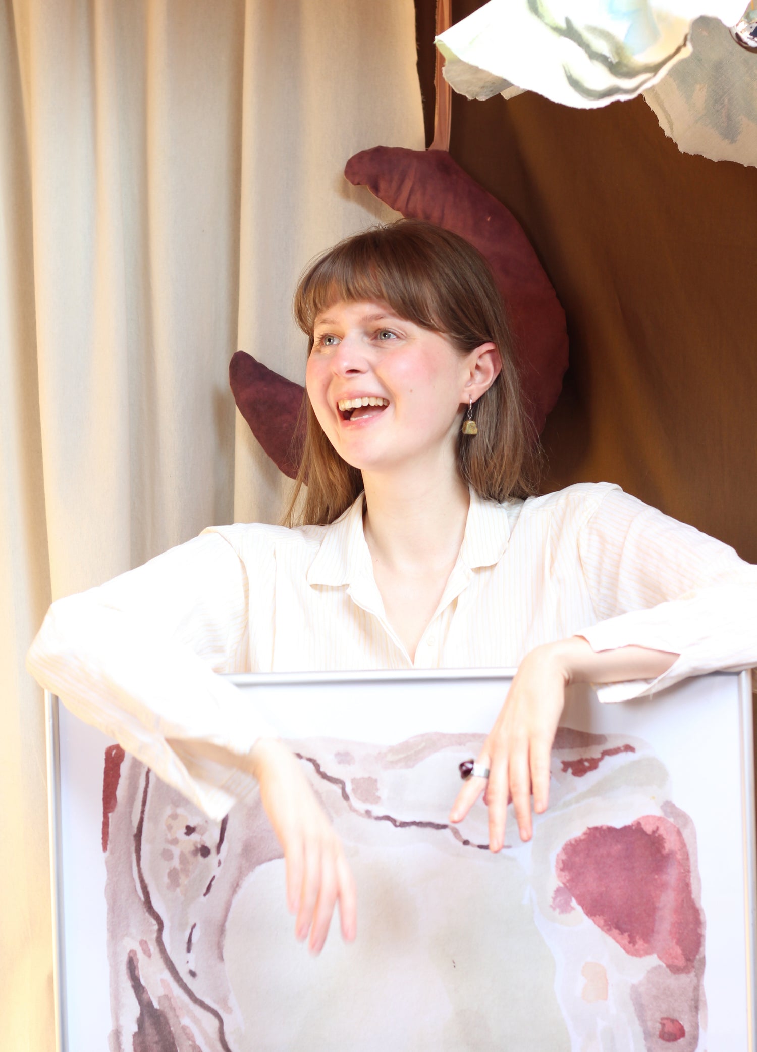 Inspired by her background in literature and textile design, she enjoys telling stories through her works, and like a piece of fabric that falls randomly, her work strives for a certain fluid quality and absence of perfection. Within this, there is always a sense of playfulness and often humor. For her, art can be a place of comfort, a way to find peace.