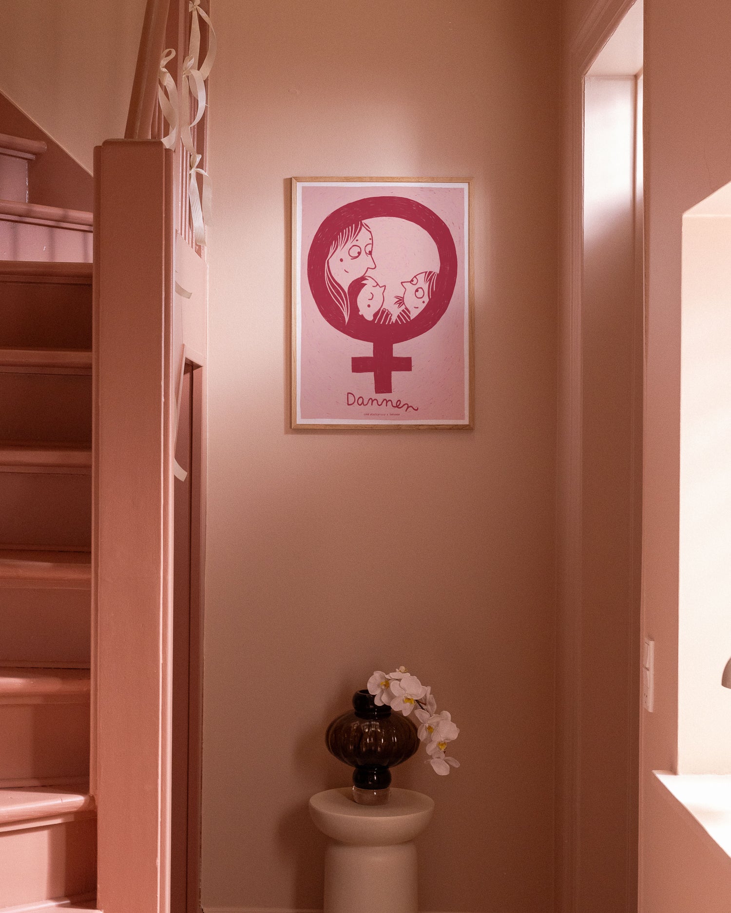 The artwork was created in close collaboration with Danner, an organization that helps women and children affected by violence. Line Jensen's art carries a personal touch of commitment and hope, where every stroke testifies to a strong belief in the power of community and the necessity of change. 25% of the sales go directly to Danner's work.