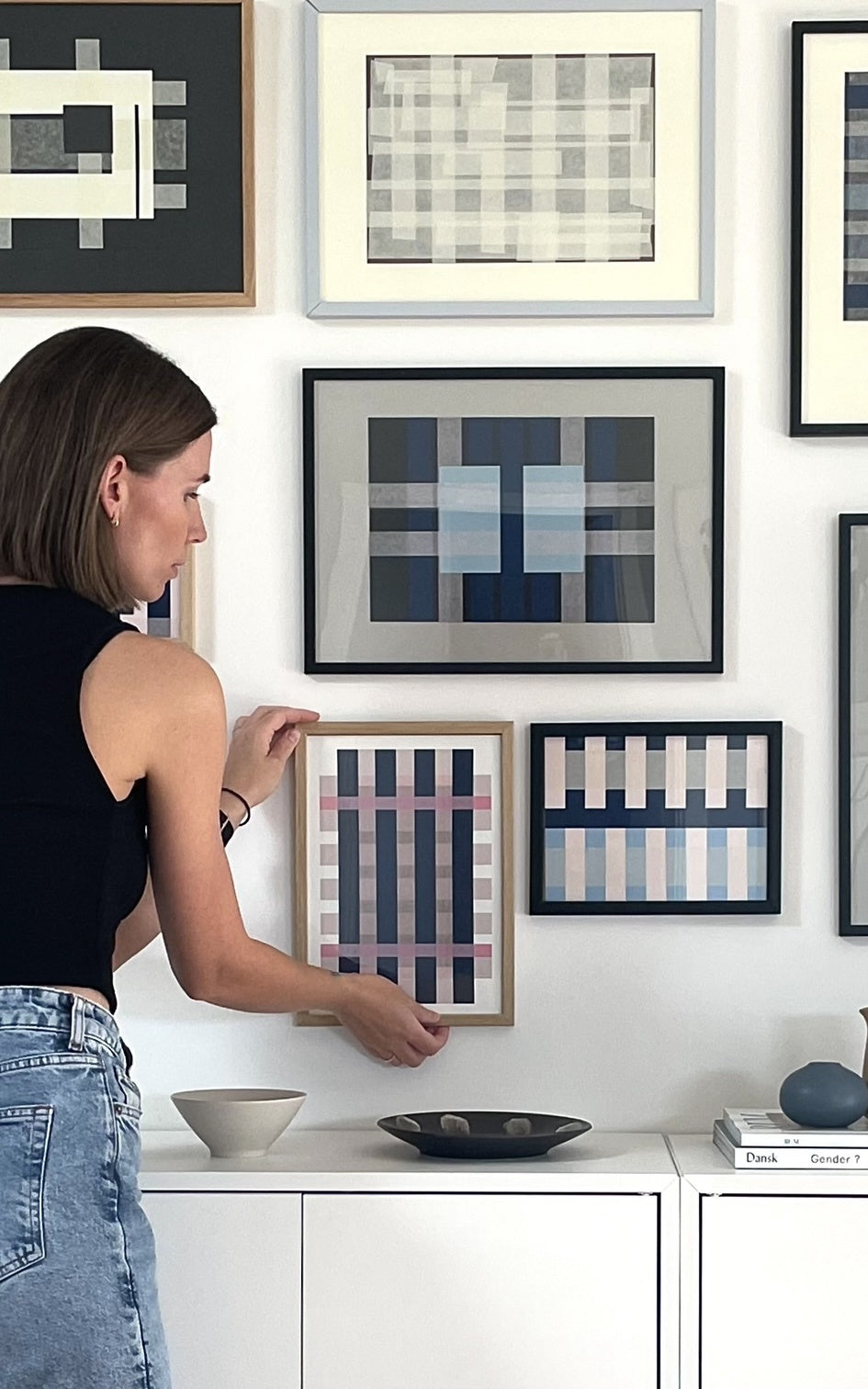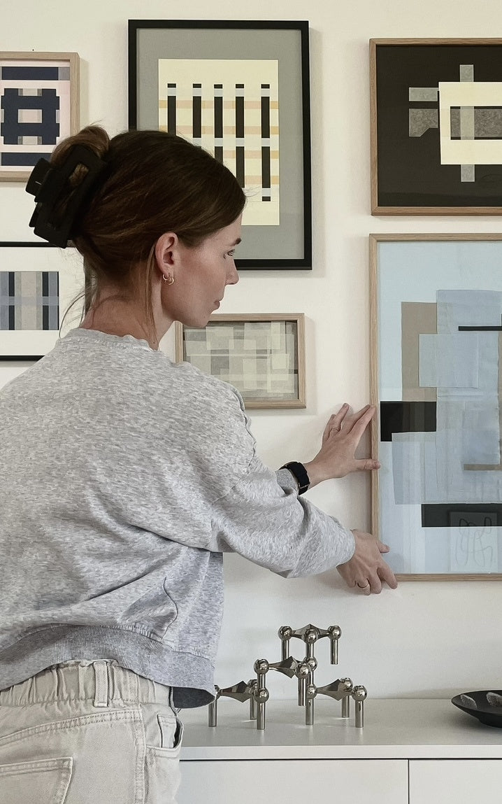 Louise Binnerup explores shapes, colors, and lines in her works, creating a graphic expression that highlights calmness and balance. Her art is characterized by simple yet strong forms and a minimalist approach to colors, adding a timeless, understated expression to any space. Her works are designed to bring life and color without overpowering the decor.