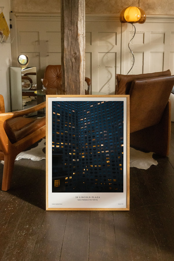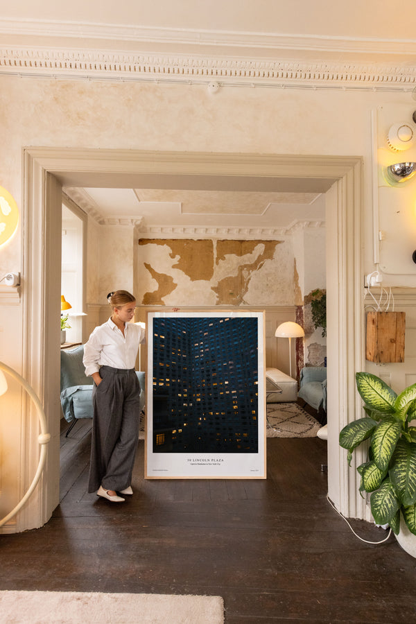 Kunstplakaten: “30 Lincoln Plaza” af kunstnerne Frederik Højfeldt er en grafisk illustreret plakat der er eksklusivt lavet til Peléton. Det har været betydningsfuldt for dem, at plakaten står til fri fortolkning. Dette værk er en del af en samling af eksklusive kunstplakater der udtrykker minimalisme og enkelhed.