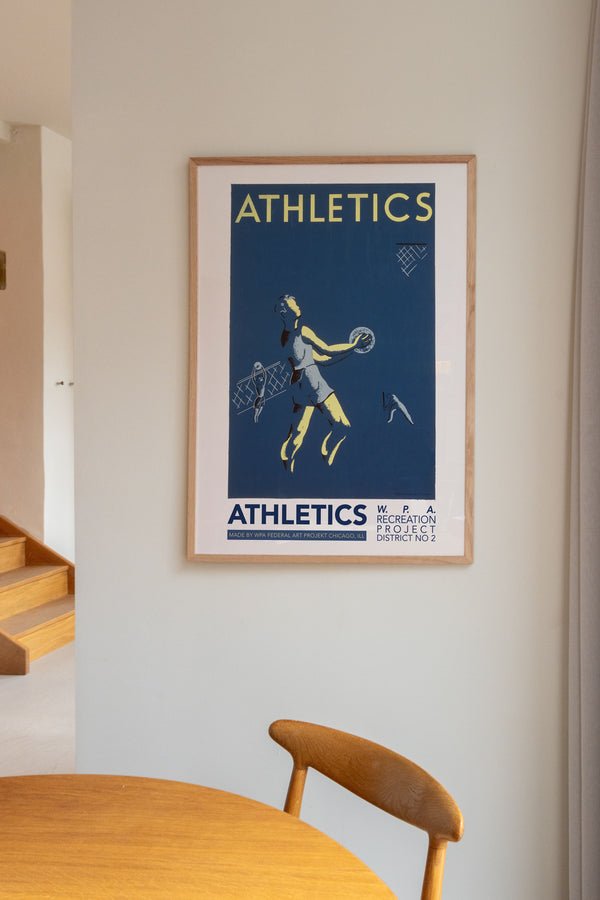 Kunstplakaten: “Athletic” af Beard er en illustreret plakat, der er genskabt af Peléton. Denne plakat er en del af Pelétons vintage kollektion med museums layout. Kunstplakaten er produceret på kvalitetspapir, med lang levetid, høj gennemtræk og detaljerig farvegengivelse.