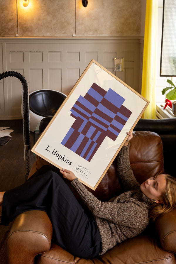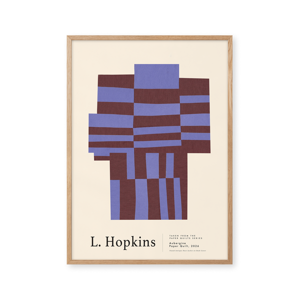 Kunstplakaten: "Aubergine” af kunstneren Lauri Hopkins forener papirklip og collage i en sanselig og harmonisk komposition. Værket er eksklusivt skabt til Peléton og står åbent for fri fortolkning.
