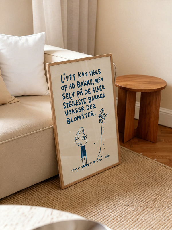 The poster shows the quote: Life can be uphill, but even on the steepest hills, flowers grow.