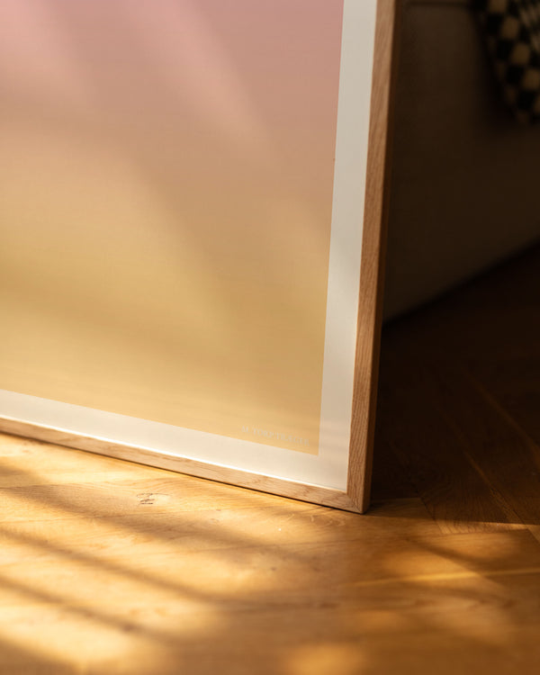100 × 140 cm is our largest format and is known as the XL poster. It is an impressive size and is the ultimate statement on a large wall in any room it appears in. Its size makes it ideal for a large wall where it can stand alone or be combined with other furniture. You can also style it with a bench underneath, a lamp, or a chair beside it to create a harmonious balance in the interior.