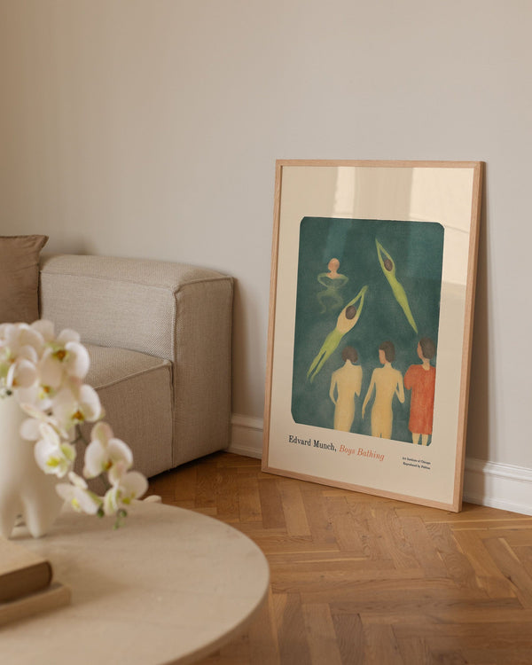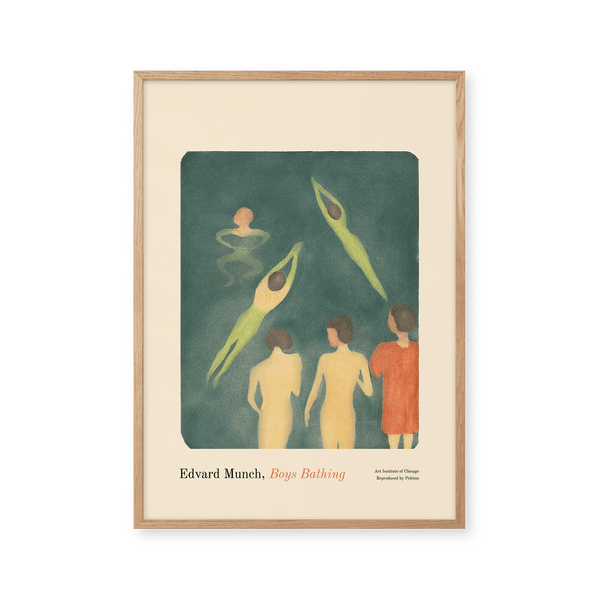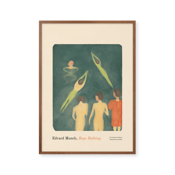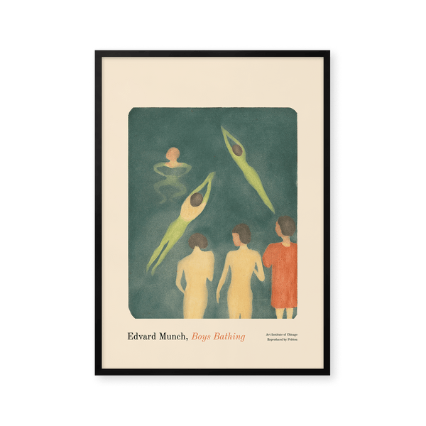 The art print: "Boys Bathing" by the artist Edvard Munch is a painted poster recreated by Peléton. This poster series of Edvard Munch's Unique Art Posters, is characterized by his unique and recognizable style. This poster is part of Peléton's vintage collection with museum layout. The art print is produced on quality paper, with long life, and detailed colour reproduction.
