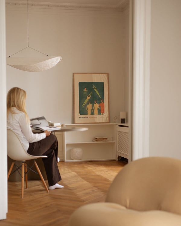 100 × 140 cm is our largest format and is known as the XL poster. It is an impressive size and is the ultimate statement on a large wall in any room it appears in. Its size makes it ideal for a large wall where it can stand alone or be combined with other furniture. You can also style it with a bench underneath, a lamp, or a chair beside it to create a harmonious balance in the interior.