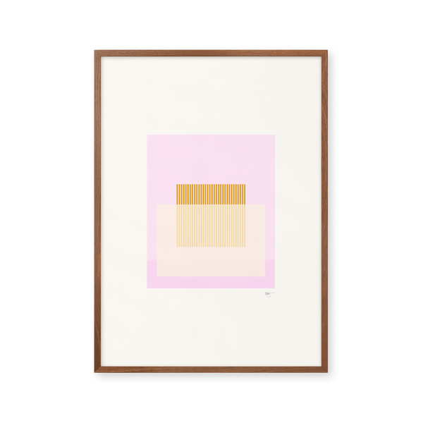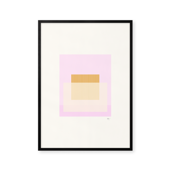 The art poster: "Composition 02" by artists Mie & Him is a graphically illustrated poster made exclusively for Peléton. It has been important to them that the poster is open to free interpretation. This piece is part of a collection of exclusive art posters that express minimalism and simplicity.