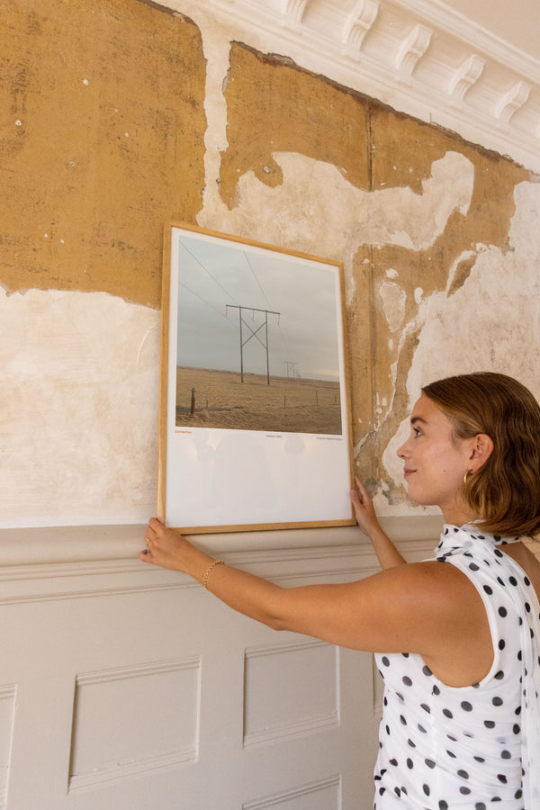 100 × 140 cm is our largest format and is known as the XL poster. It is an impressive size and is the ultimate statement on a large wall in any room it appears in. Its size makes it ideal for a large wall where it can stand alone or be combined with other furniture. You can also style it with a bench underneath, a lamp, or a chair beside it to create a harmonious balance in the interior.
