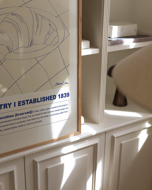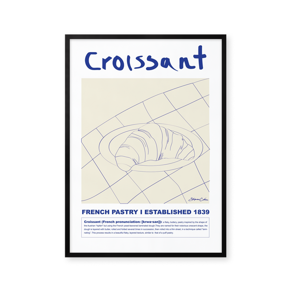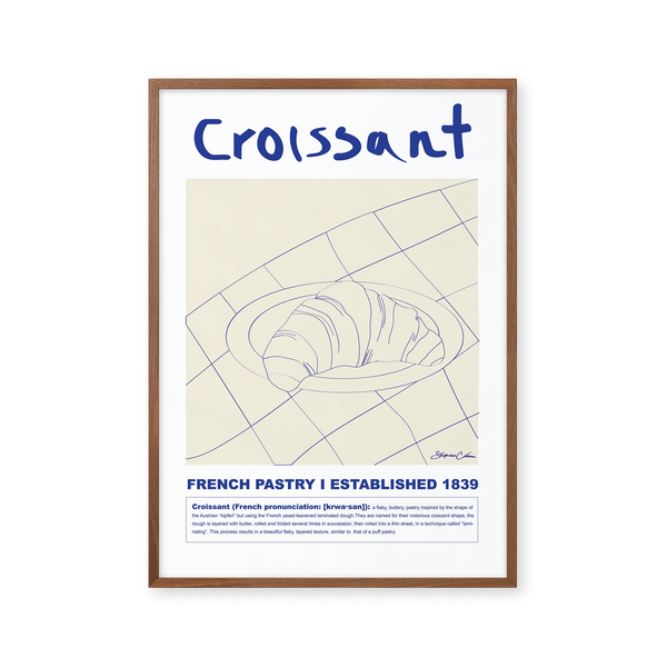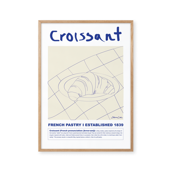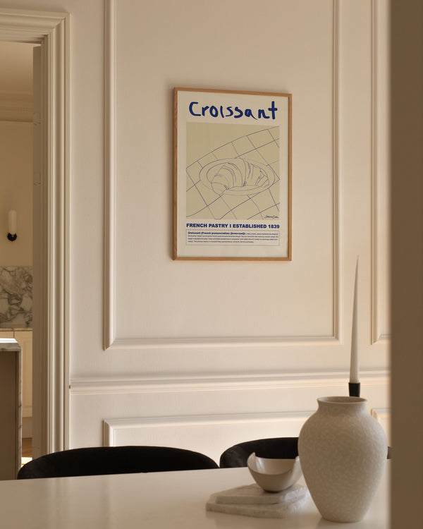 The art poster: "Croissant" by artist Stephie Cardona is a graphic illustrated poster curated by Peléton. It has been important to her that the poster is open to free interpretation.
