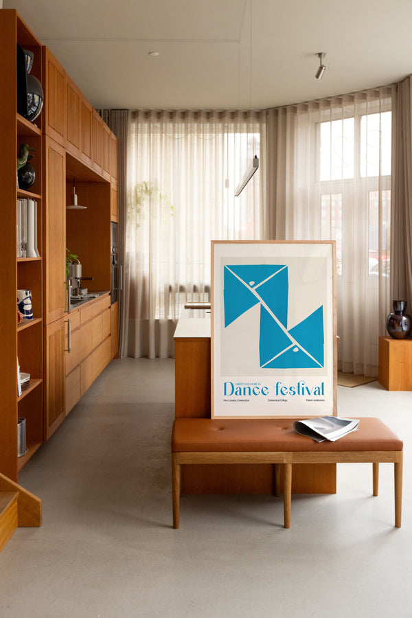 Kunstplakaten: “Dance Festival” af George Tscherny er en illustreret plakat, der er genskabt af Peléton. Denne plakat er en del af Pelétons vintage kollektion med museums layout. Kunstplakaten er produceret på kvalitetspapir, med lang levetid, høj gennemtræk og detaljerig farvegengivelse.