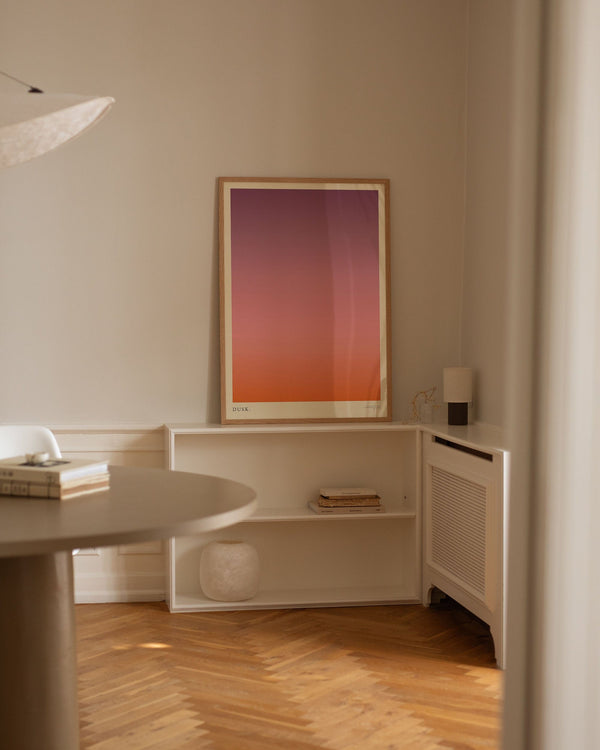 100 × 140 cm is our largest format and is known as the XL poster. It is an impressive size and is the ultimate statement on a large wall in any room it appears in. Its size makes it ideal for a large wall where it can stand alone or be combined with other furniture. You can also style it with a bench underneath, a lamp, or a chair beside it to create a harmonious balance in the interior.
