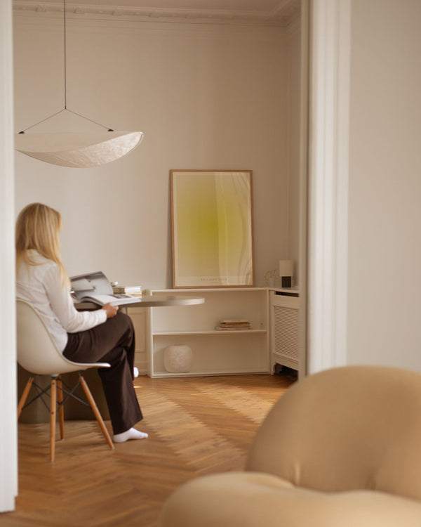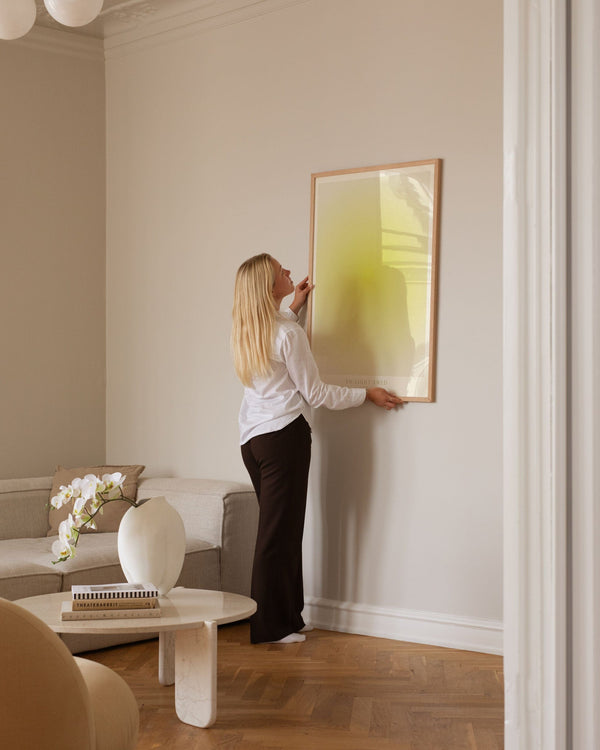100 × 140 cm is our largest format and is known as the XL poster. It is an impressive size and is the ultimate statement on a large wall in any room it appears in. Its size makes it ideal for a large wall where it can stand alone or be combined with other furniture. You can also style it with a bench underneath, a lamp, or a chair beside it to create a harmonious balance in the interior.
