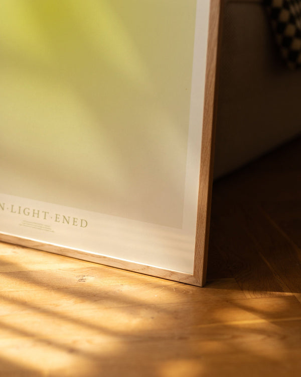 The art poster: "Enlightened" by artists Mie & Him is a graphically illustrated poster curated by Peléton. It has been significant for them that the poster is open to free interpretation.