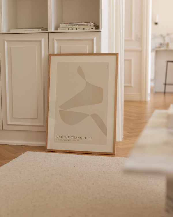 The art poster "Études d'équilibre No. 11" by artist Karolina Székely is a graphically illustrated poster curated by Peléton. It has been significant for her that the poster is open to free interpretation.