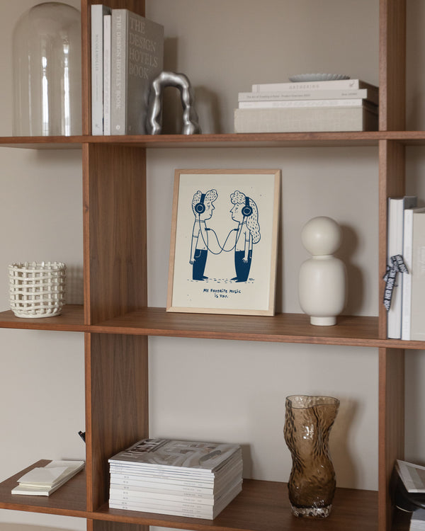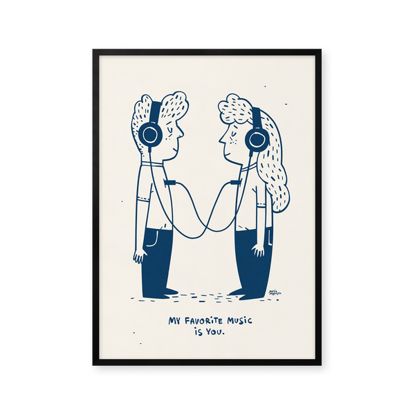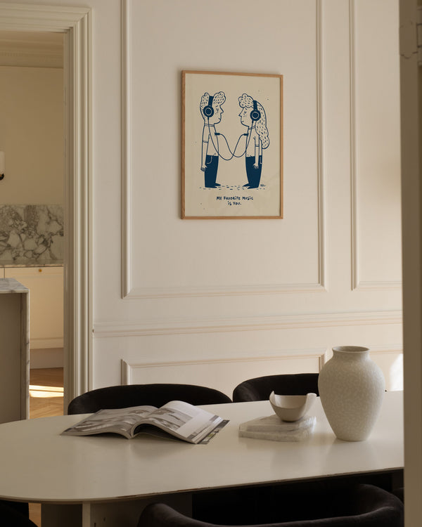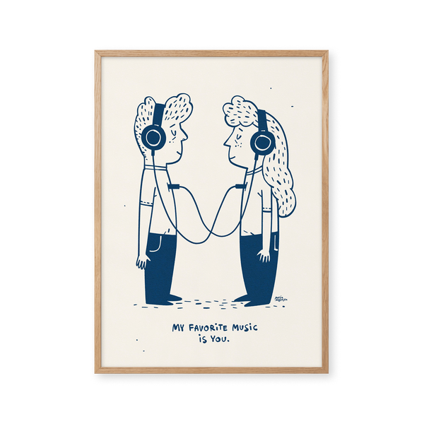 The art print: "Favorite music" by artist Martin Jørgensen is an illustrated poster curated by Peléton. It has been important to Martin Jørgensen that the poster is open to free interpretation.