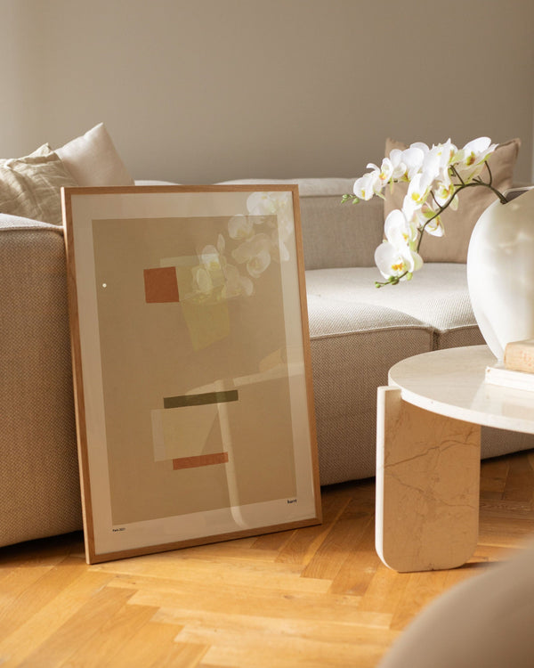 A2 & 40 × 50 cm are both sizes that provide a stronger visual expression without dominating the space. A2 has a taller rectangular shape, while 40 × 50 cm is more square. Both sizes are especially suitable above a dresser, as part of a gallery wall, or as a fine detail in a larger room.