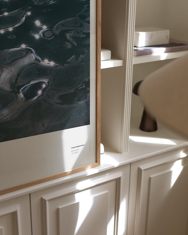 100 × 140 cm is our largest format and is known as the XL poster. It is an impressive size and is the ultimate statement on a large wall in any room it appears in. Its size makes it ideal for a large wall where it can stand alone or be combined with other furniture. You can also style it with a bench underneath, a lamp, or a chair beside it to create a harmonious balance in the interior.