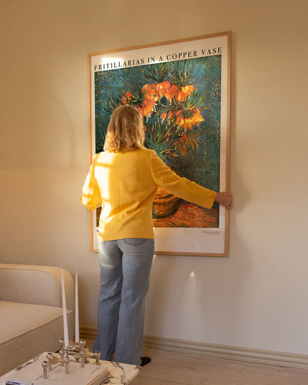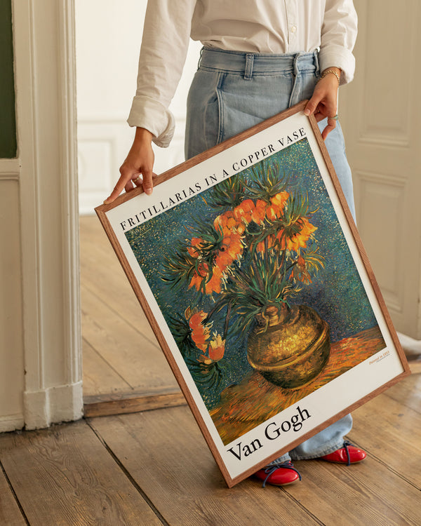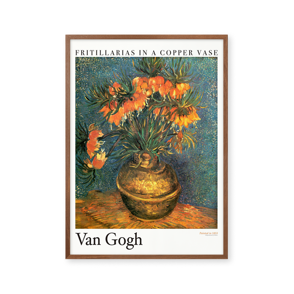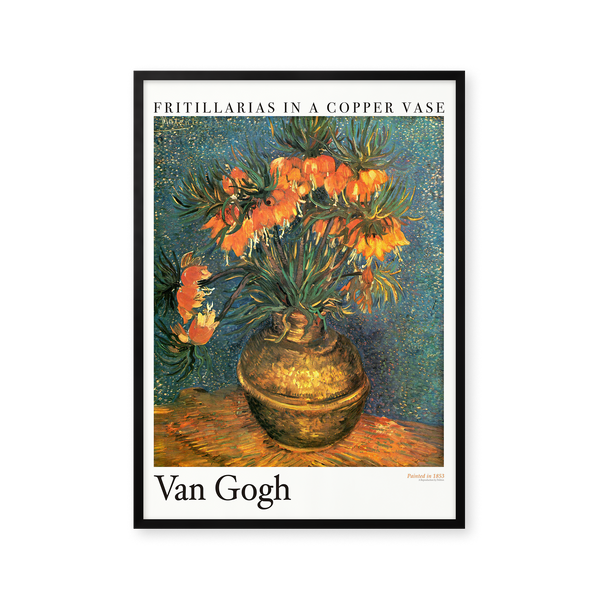 Art poster: “Fritillarias in a copper vase” by the artist Vincent van Gogh is an abstract illustrated poster, recreated by Peléton. This poster is part of Peléton's vintage collection with museum layout. The art poster is produced on quality paper, with long durability, high opacity, and detailed color reproduction.