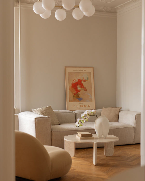 100 × 140 cm is our largest format and is known as the XL poster. It is an impressive size and is the ultimate statement on a large wall in any room it appears in. Its size makes it ideal for a large wall where it can stand alone or be combined with other furniture. You can also style it with a bench underneath, a lamp, or a chair beside it to create a harmonious balance in the interior.