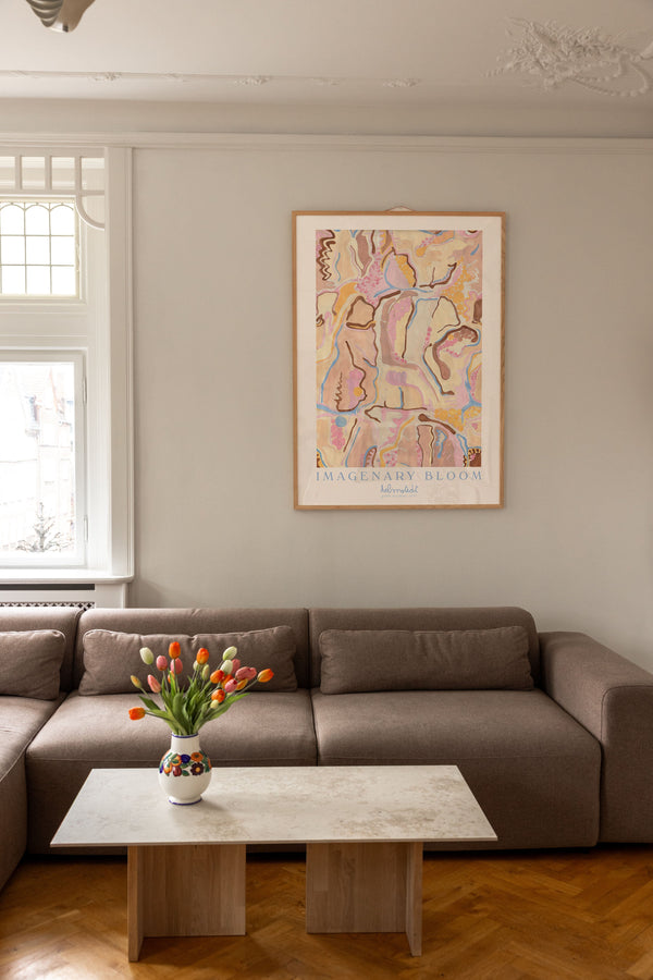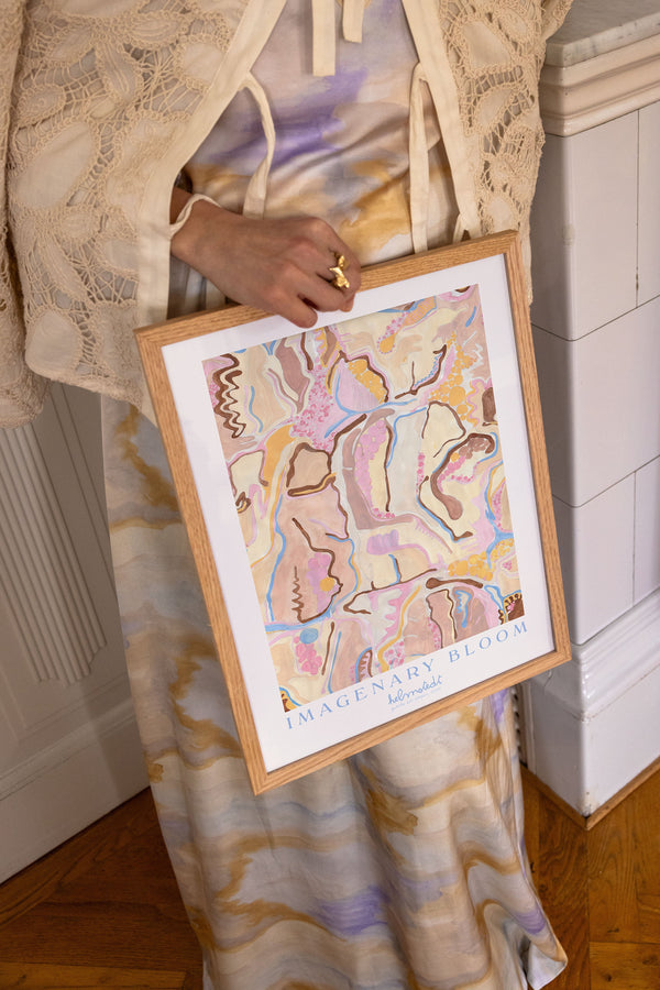 Kunstplakaten "Imaginary Bloom" er malet af Emilie Helmstedt og indgår i den eksklusive kunstserie Peléton x Helmstedt, hvor interiør, design og fashion smelter sammen i et fælles univers. Et helt unikt samarbejde, som kun kan opleves her.