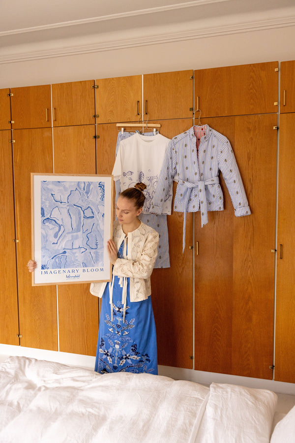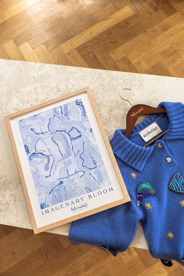 Kunstplakaten "Imaginary Bloom – Blue" er malet af Emilie Helmstedt og indgår i den eksklusive kunstserie Peléton x Helmstedt, hvor interiør, design og fashion smelter sammen i et fælles univers. Et helt unikt samarbejde, som kun kan opleves her.
