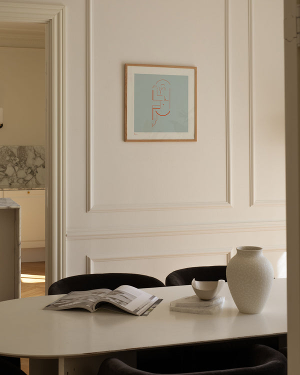 100 × 140 cm is our largest format and is known as the XL poster. It is an impressive size and is the ultimate statement on a large wall in any room it appears in. Its size makes it ideal for a large wall where it can stand alone or be combined with other furniture. You can also style it with a bench underneath, a lamp, or a chair beside it to create a harmonious balance in the interior.