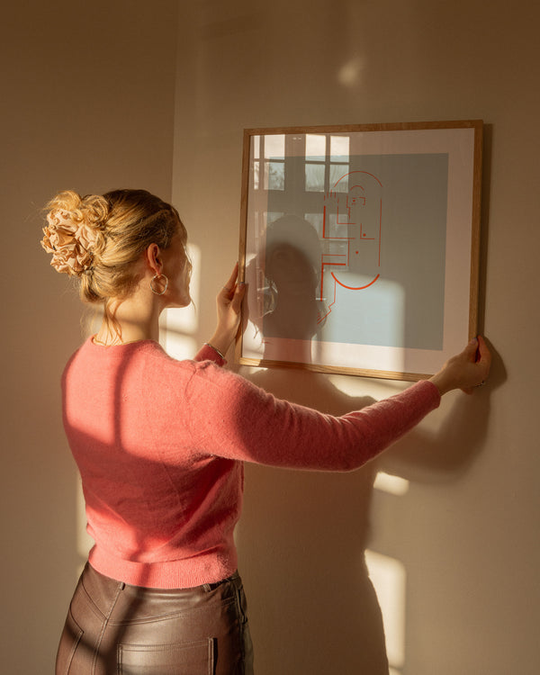 50 x 50 cm is a square size that creates a nice balance on a wall. It works beautifully as a standalone piece or as part of a gallery wall, where it can provide a calm and graphic expression. Perfect for both living room, office, or entryway, where you want a format with character without taking up too much space.