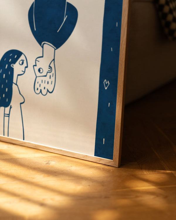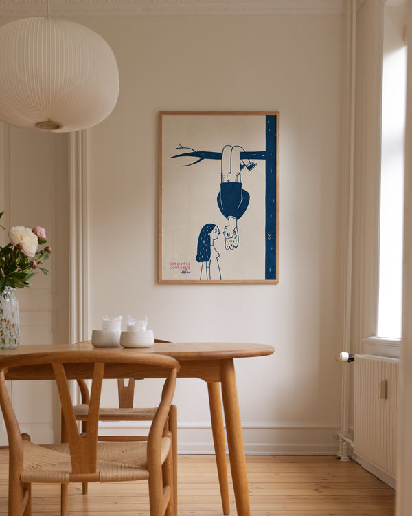 The art poster: "Love upside down" by the artist Martin Jørgensen is an illustrated poster curated by Peléton. It has been significant for Martin Jørgensen, that the poster is open to free interpretation.