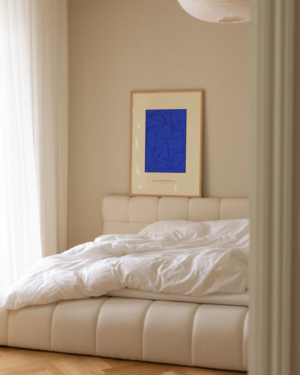 100 × 140 cm is our largest format and is known as the XL poster. It is an impressive size and is the ultimate statement on a large wall in any room it appears in. Its size makes it ideal for a large wall where it can stand alone or be combined with other furniture. You can also style it with a bench underneath, a lamp, or a chair beside it to create a harmonious balance in the interior.