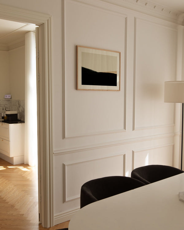 100 × 140 cm is our largest format and is known as the XL poster. It is an impressive size and is the ultimate statement on a large wall in any room it appears in. Its size makes it ideal for a large wall where it can stand alone or be combined with other furniture. You can also style it with a bench underneath, a lamp, or a chair beside it to create a harmonious balance in the interior.