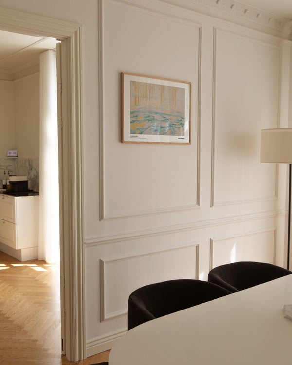 100 × 140 cm is our largest format and is known as the XL poster. It is an impressive size and is the ultimate statement on a large wall in any room it appears in. Its size makes it ideal for a large wall where it can stand alone or be combined with other furniture. You can also style it with a bench underneath, a lamp, or a chair beside it to create a harmonious balance in the interior.