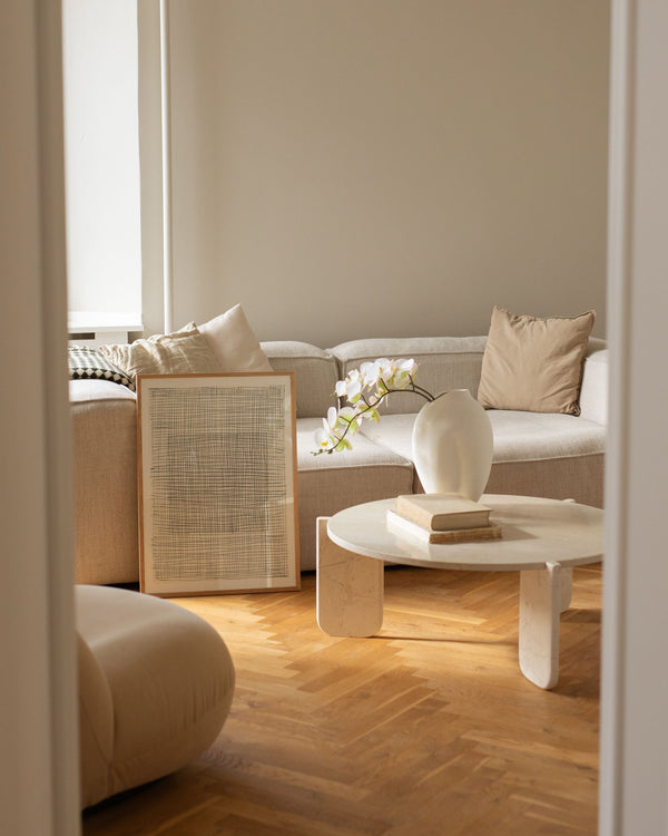 100 × 140 cm is our largest format and is known as the XL poster. It is an impressive size and is the ultimate statement on a large wall in any room it appears in. Its size makes it ideal for a large wall where it can stand alone or be combined with other furniture. You can also style it with a bench underneath, a lamp, or a chair beside it to create a harmonious balance in the interior.