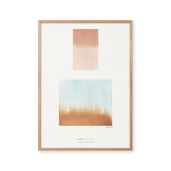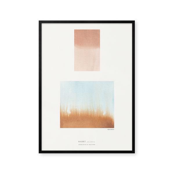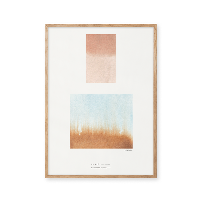 Kunstplakaten: “MEMOIRE 2” af kunstnerne Harrt Studio er en grafisk illustreret plakat der er eksklusivt lavet til Peléton. Det har været betydningsfuldt for dem, at plakaten står til fri fortolkning. Dette værk er en del af en samling af eksklusive kunstplakater der udtrykker minimalisme og enkelhed.