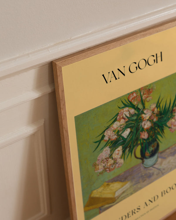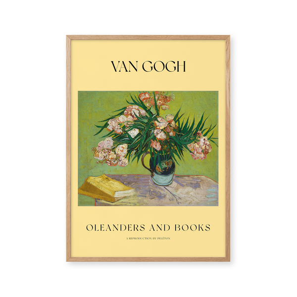 The art poster:"Oleanders and Books" by artist Vincent van Gogh is a painted poster that Peléton has recreated. This poster series of Vincent van Gogh's art posters is characterized by his artwork with bold colors and dramatic, impulsive and expressive brushwork. This poster is part of Peleton's vintage collection with museum layout. The art poster is produced on high quality paper with long life, high transparency and detailed color reproduction.
