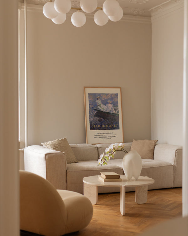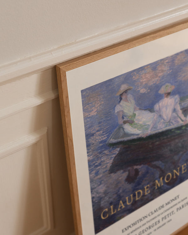 The art poster: "On The Boat" by artist Claude Monet is a painted work of art recreated as a poster by Peléton. This poster collection of Claude Monet's colourful art posters with light colours, is characterised by his realistic and impressionistic style. This poster is part of Peléton's vintage collection with museum layout. The art poster is produced on quality paper, with long life, and detailed colour reproduction.