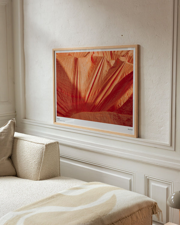 100 × 140 cm is our largest format and is known as the XL poster. It is an impressive size and is the ultimate statement on a large wall in any room it appears in. Its size makes it ideal for a large wall where it can stand alone or be combined with other furniture. You can also style it with a bench underneath, a lamp, or a chair beside it to create a harmonious balance in the interior.