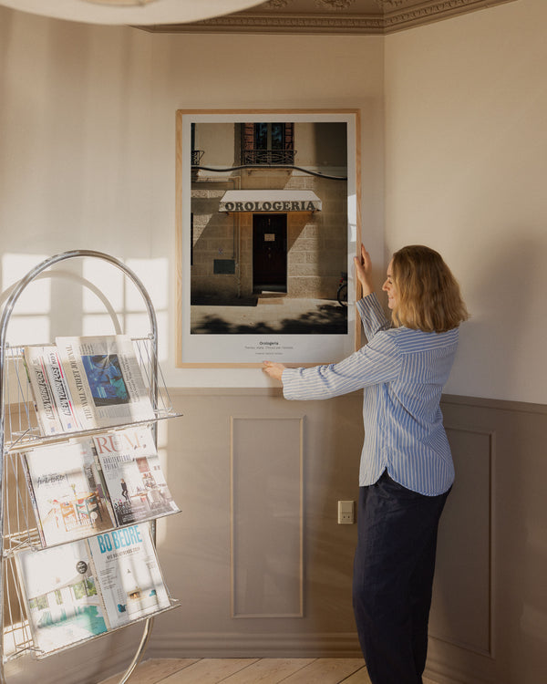 100 × 140 cm is our largest format and is known as the XL poster. It is an impressive size and is the ultimate statement on a large wall in any room it appears in. Its size makes it ideal for a large wall where it can stand alone or be combined with other furniture. You can also style it with a bench underneath, a lamp, or a chair beside it to create a harmonious balance in the interior.
