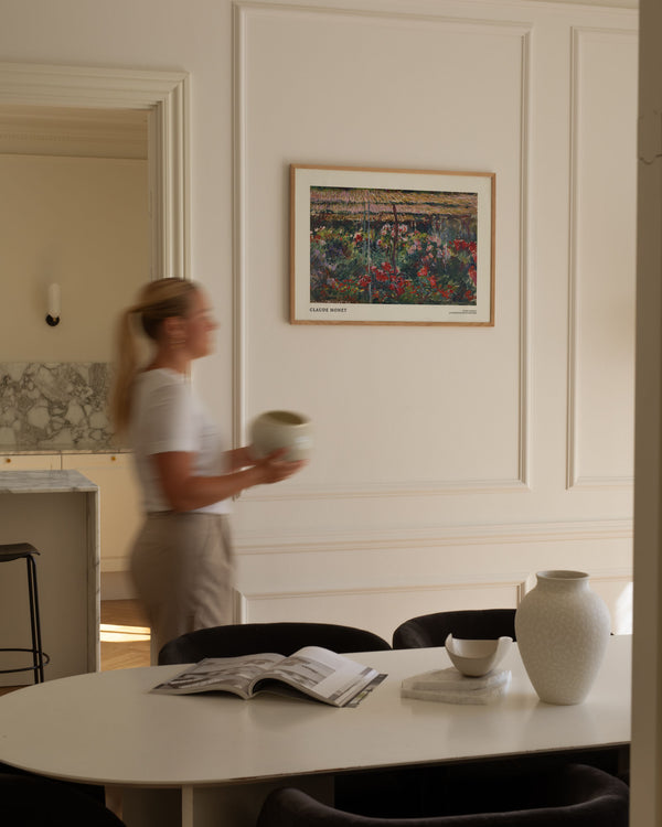 100 × 140 cm is our largest format and is known as the XL poster. It is an impressive size and is the ultimate statement on a large wall in any room it appears in. Its size makes it ideal for a large wall where it can stand alone or be combined with other furniture. You can also style it with a bench underneath, a lamp, or a chair beside it to create a harmonious balance in the interior.