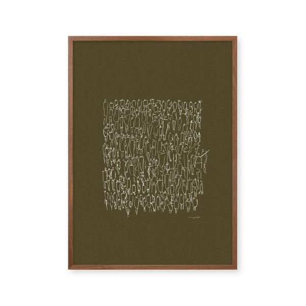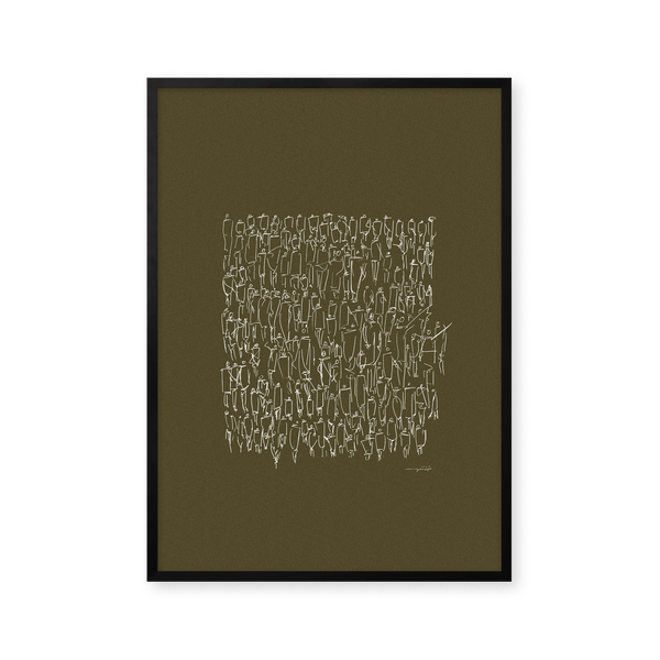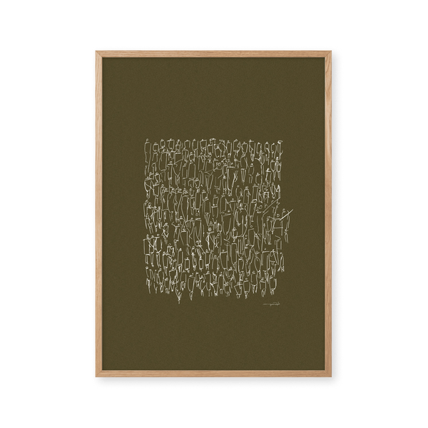 The art print: "People" by artists Mie & Him is a graphically illustrated art print curated by Peléton. It has been important to them that the art print is up for free interpretation.