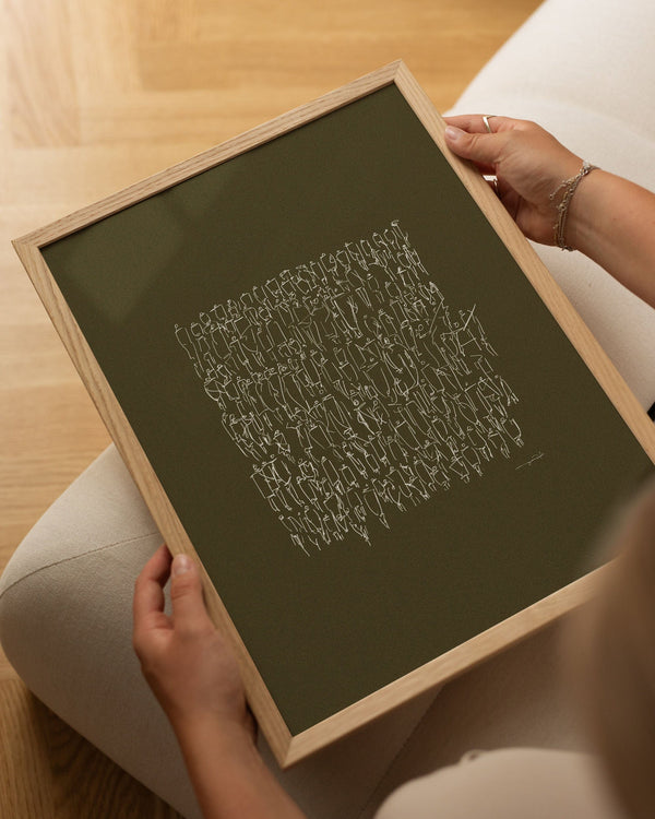 50 x 50 cm is a square size that creates a nice balance on a wall. It works beautifully as a standalone piece or as part of a gallery wall, where it can provide a calm and graphic expression. Perfect for both living room, office, or entryway, where you want a format with character without taking up too much space.