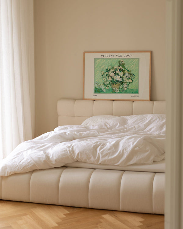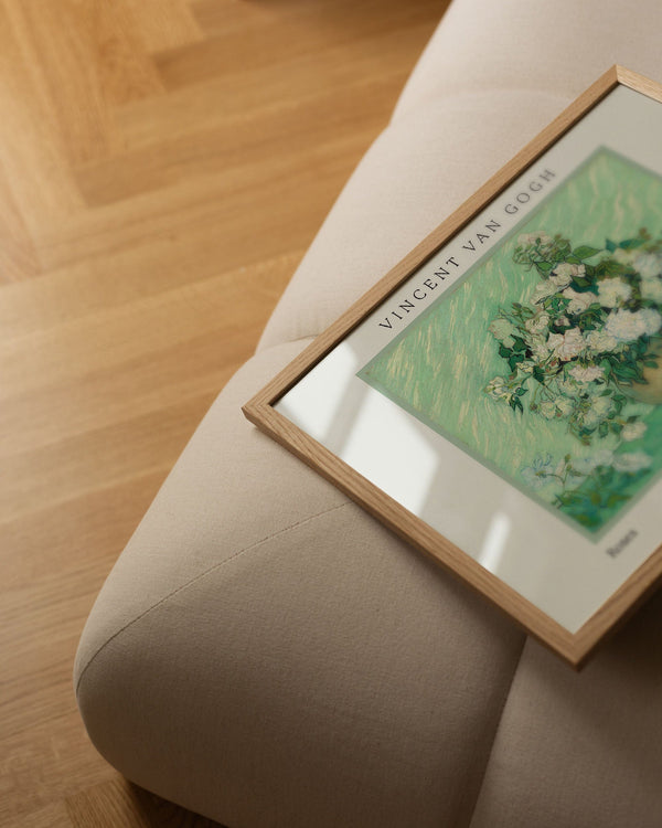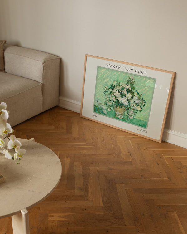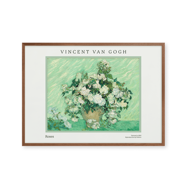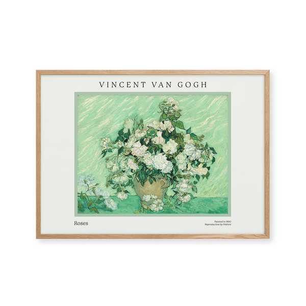 The art poster: "Roses" by the artist Vincent van Gogh is a painted poster that Peléton has recreated. This poster series of Vincent van Gogh's art posters features his artwork with bold colours and dramatic, impulsive and expressive brushwork. This art print is part of Peleton's vintage collection with museum layout. The art poster is produced on premium paper with long life, high translucency and detailed colour reproduction.