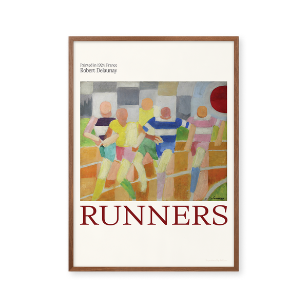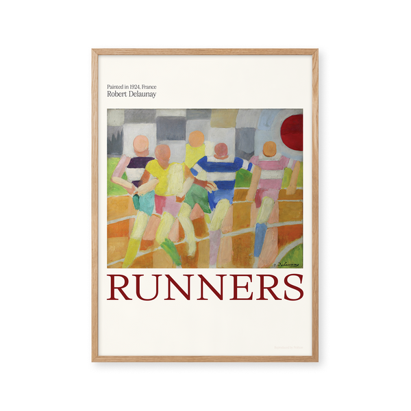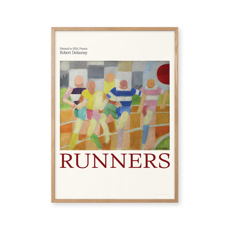 Kunstplakaten: “Runners” af kunstneren Robert Delaunay er en illustreret plakat, der er genskabt af Peléton. Denne plakat er en del af Pelétons vintage kollektion med museums layout. Kunstplakaten er produceret på kvalitetspapir, med lang levetid, høj gennemtræk og detaljerig farvegengivelse.
