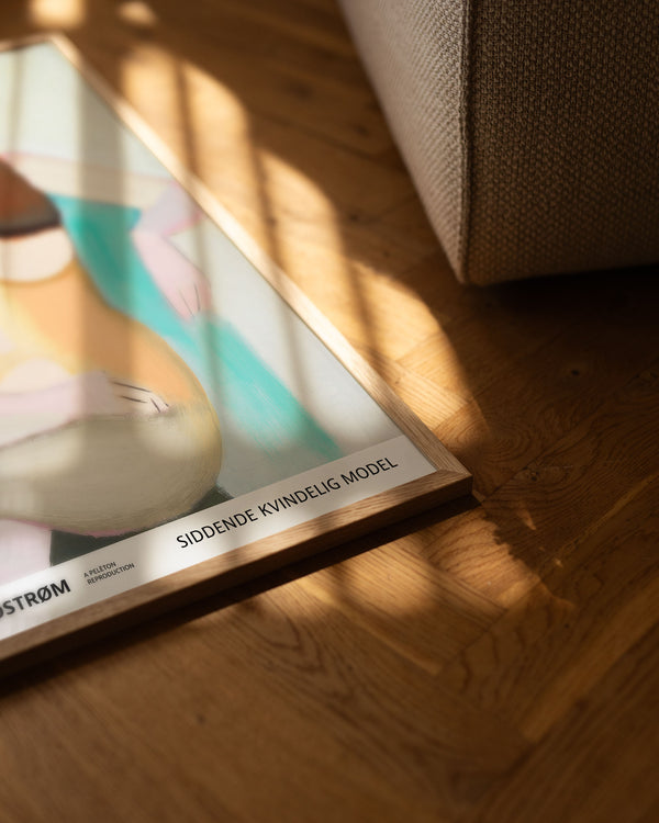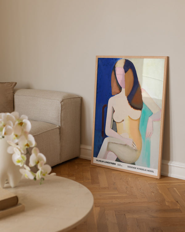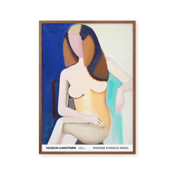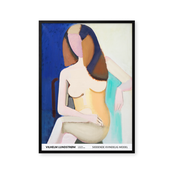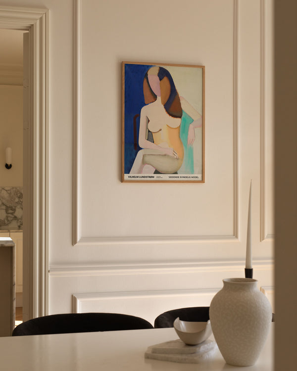 The art poster: "Sitting female model 1950" by the artist Vilhelm Lundstrøm is a painted poster recreated by Peléton. This poster series of Vilhelm Lundstrom's experimental and geometric art posters, is characterized by his colorful but simple style. This poster is part of Peléton's vintage collection with museum layout. The art poster is produced on quality paper, with long life, and detailed colour reproduction.