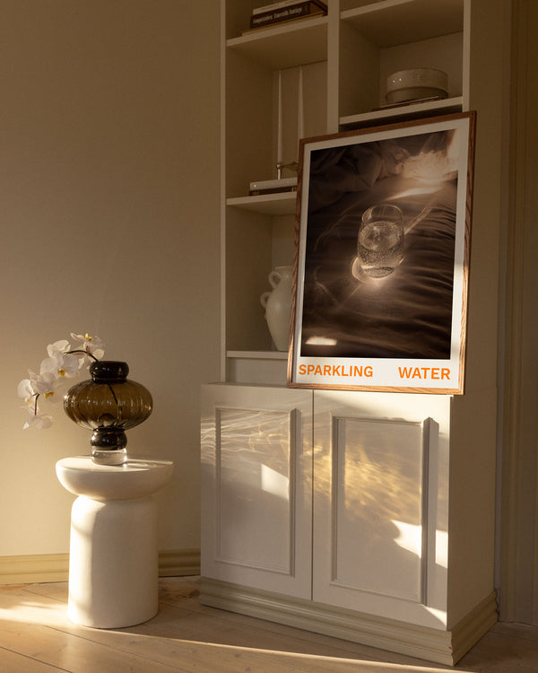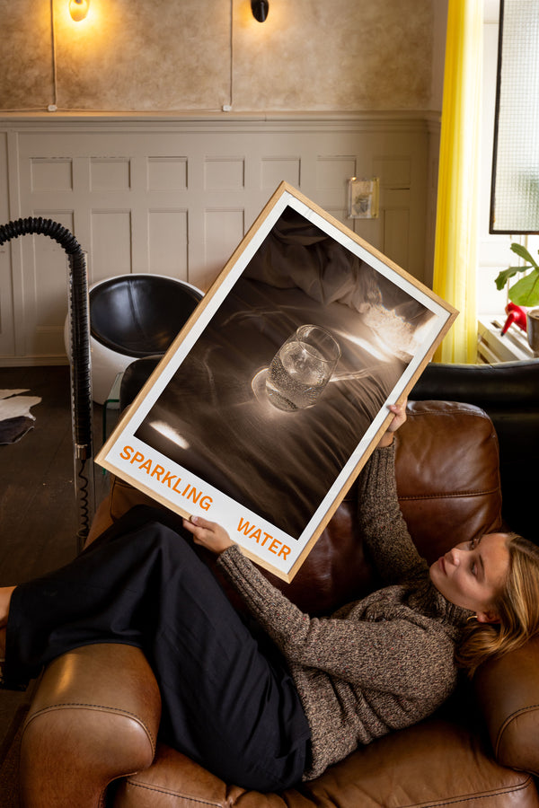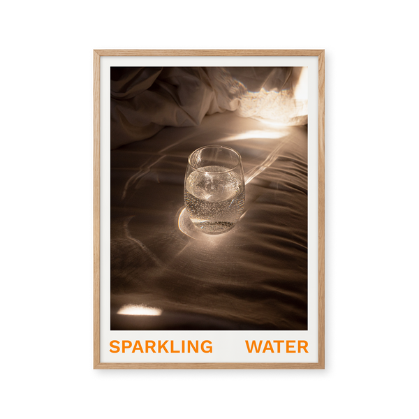 Kunstplakaten: “Sparkling Water” af kunstnerne Frederik Højfeldt er en grafisk illustreret plakat der er eksklusivt lavet til Peléton. Det har været betydningsfuldt for dem, at plakaten står til fri fortolkning. Dette værk er en del af en samling af eksklusive kunstplakater der udtrykker minimalisme og enkelhed.