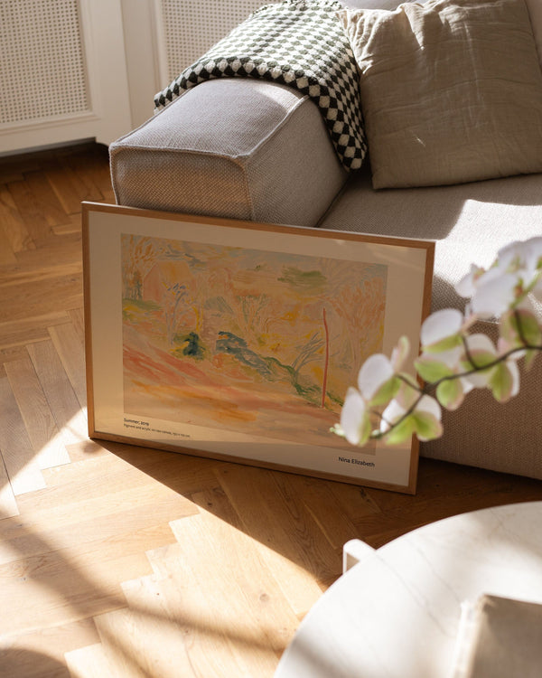 The art print: "Summer" by artist Nina Elizabeth is a painted art print curated by Peléton. The art print by Nina Elizabeth is up for free interpretation.