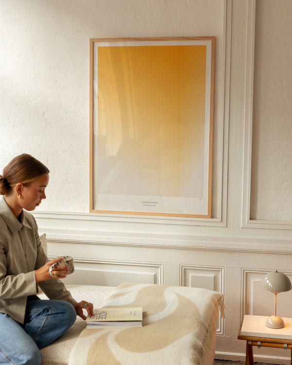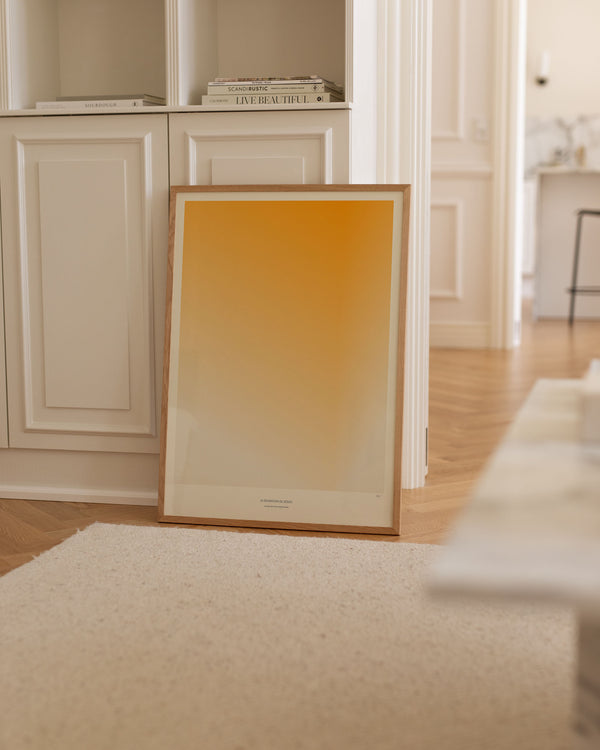 100 × 140 cm is our largest format and is known as the XL poster. It is an impressive size and is the ultimate statement on a large wall in any room it appears in. Its size makes it ideal for a large wall where it can stand alone or be combined with other furniture. You can also style it with a bench underneath, a lamp, or a chair beside it to create a harmonious balance in the interior.