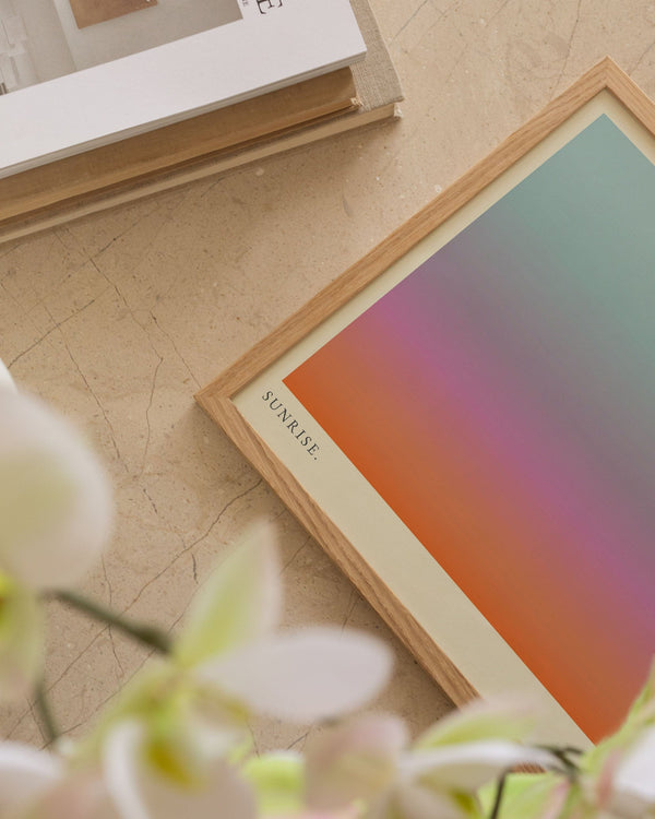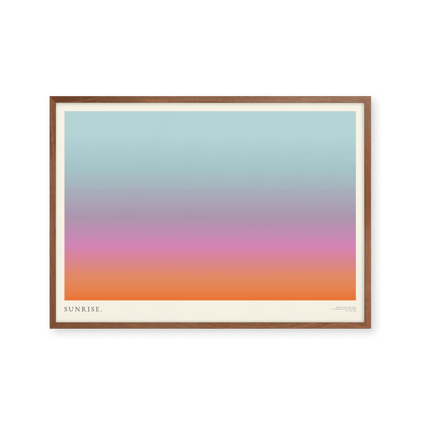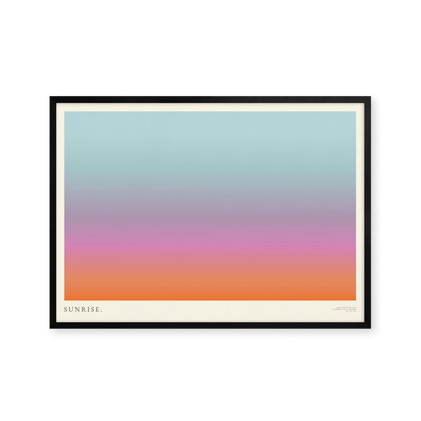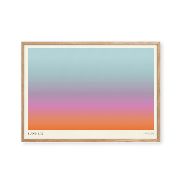 The art print: "Sunrise" by artists Mie & Him is a graphically illustrated art print curated by Peléton. It has been important to them that the art print is up for free interpretation.