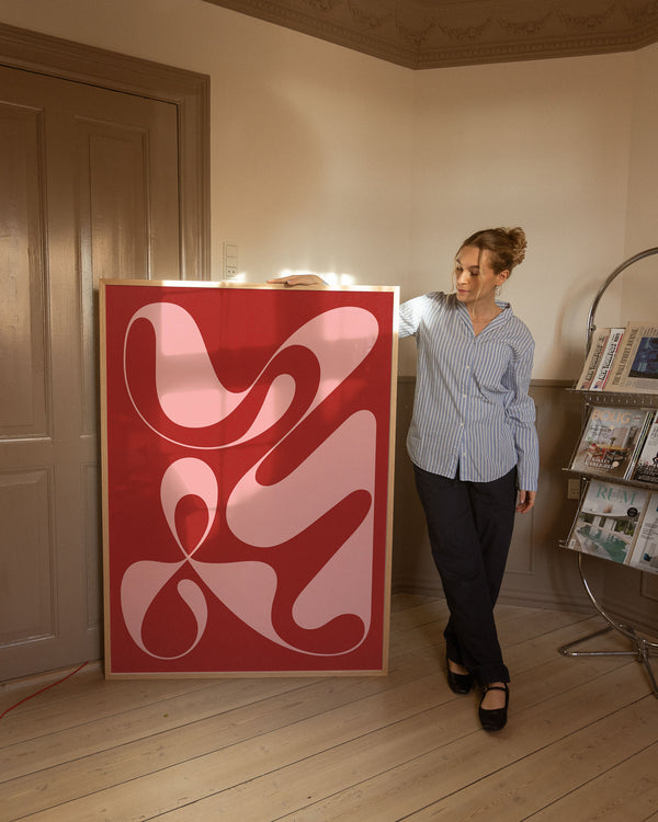 100 × 140 cm is our largest format and is known as the XL poster. It is an impressive size and is the ultimate statement on a large wall in any room it appears in. Its size makes it ideal for a large wall where it can stand alone or be combined with other furniture. You can also style it with a bench underneath, a lamp, or a chair beside it to create a harmonious balance in the interior.