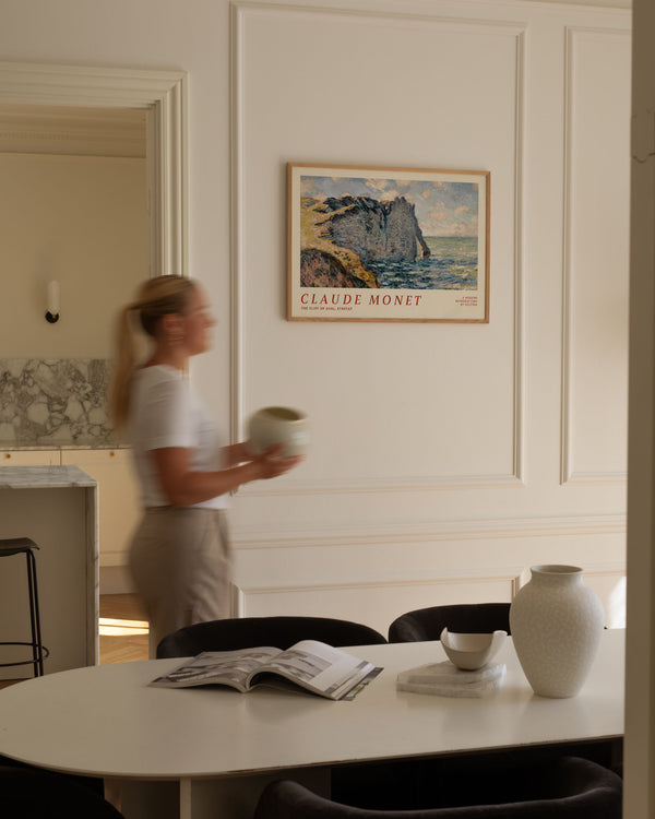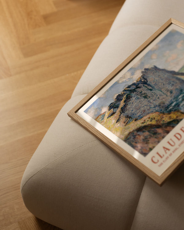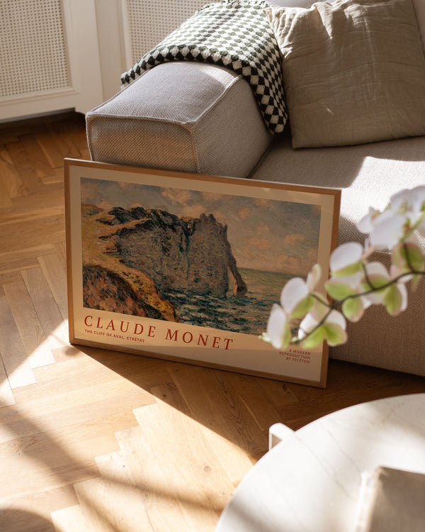 The art poster: 'The Cliff of Aval, Etrétat' by artist Claude Monet is a painted work of art recreated as a poster by Peléton. This poster collection of Claude Monet's colourful art posters with light colours, is characterised by his realistic and impressionistic style. This poster is part of Peléton's vintage collection with museum layout. The art poster is produced on quality paper, with long life, and detailed colour reproduction.
