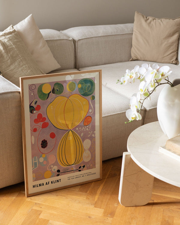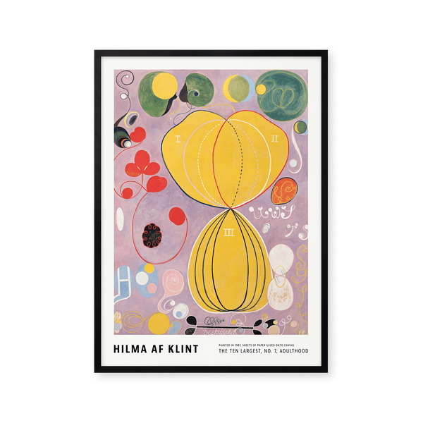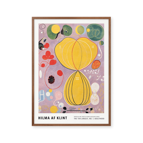 The art poster: "The Ten Largest, No. 7, Adulthood" by artist Hilma af Klint is an abstract illustrated poster recreated by Peléton. This poster series of Hilma af Klint's unique and abstract art posters, is characterized by her inventive and personal expression. This poster is part of Peléton's vintage collection with museum layout. The art poster is produced on quality paper, with long life, and detailed colour reproduction.